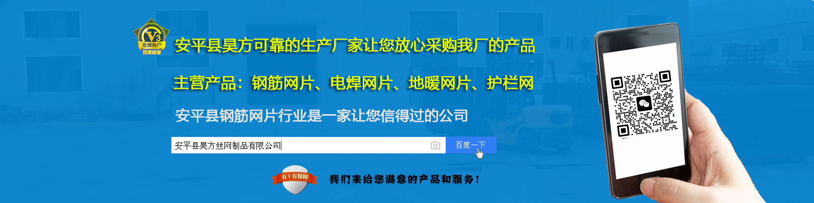 安平縣坤鼎絲網(wǎng)制品有限公司(原安平縣鑫平護欄網(wǎng)廠)位于安平縣油子開發(fā)區(qū),是專業(yè)生產(chǎn)各種公路護欄網(wǎng)、高速公路護欄網(wǎng)、小區(qū)護欄網(wǎng)、金屬焊接防盜網(wǎng)、鐵路隔離防護網(wǎng)、防眩網(wǎng)、防拋網(wǎng)、機場隔離網(wǎng)、圍網(wǎng)、圍欄網(wǎng)、場地圍網(wǎng)、體育圍網(wǎng)、運動場圍網(wǎng)、小區(qū)圍網(wǎng)、生活區(qū)圍網(wǎng)、倉庫隔離網(wǎng)、圍山網(wǎng)、圍墻網(wǎng)、建筑用網(wǎng)的專業(yè)廠家。 本廠以“質(zhì)量求生存,客戶是上帝,交貨及時,價格合理,服務周到”的宗旨為廣大客戶服務;本著“質(zhì)量求生存,信譽謀發(fā)展”的生產(chǎn)原則,贏得了廣大新老客戶的好評。多年來,我們憑借吸納進的技術、過硬的質(zhì)量、良好的信譽和服務、與多家客商建立了穩(wěn)固的供貨關系,客戶遍及全國各地和地區(qū)。經(jīng)過多年的發(fā)展,我廠一貫堅持以科學的管理和嚴格的檢驗制度,確保防護網(wǎng)產(chǎn)品的合格率,并以可靠的信譽和服務,贏得了新老客戶的信譽和贊譽。...
